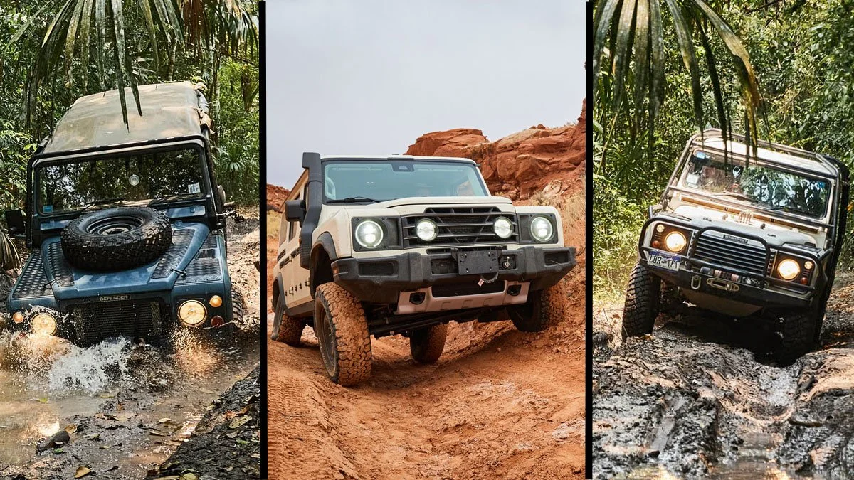 Graham Jackson’s expedition vehicles used to test the Overland Glovebox Guide. Left, Abby a Land Rover Defender 110 soft top, center Gretta an Ineos Grenadier, and right Honey-B a Land Rover Defender 110. Photos: Nathan Hindman